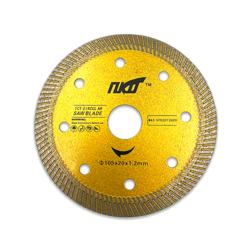 • ใบตัดกระเบื้องสีเหลืองขนาด 105*20*1.2mm. ใบบางพิเศษ เพิ่มความคม